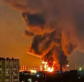 В ночь на 8 января в районе города Энгельс, Саратовская область (РФ), произошла серия мощных взрывов, предположительно в результате воздушной атаки с использованием беспилотников. Вскоре после этого начался крупный пожар, вероятно, на нефтяной базе.